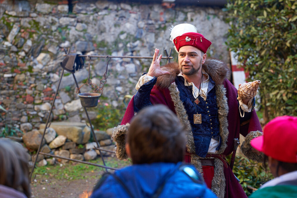 Welcoming of the students in the garden in front of the tower entrance. Greeting by the Captain of the San Giorgio Militia, dressed in medieval attire. General introduction to the medieval castles of our area and a detailed description of the tower that the students can admire before their eyes. Explanation of the materials used and its function in the medieval era. A moment of reflection for the students with a Q&A session with the expert.